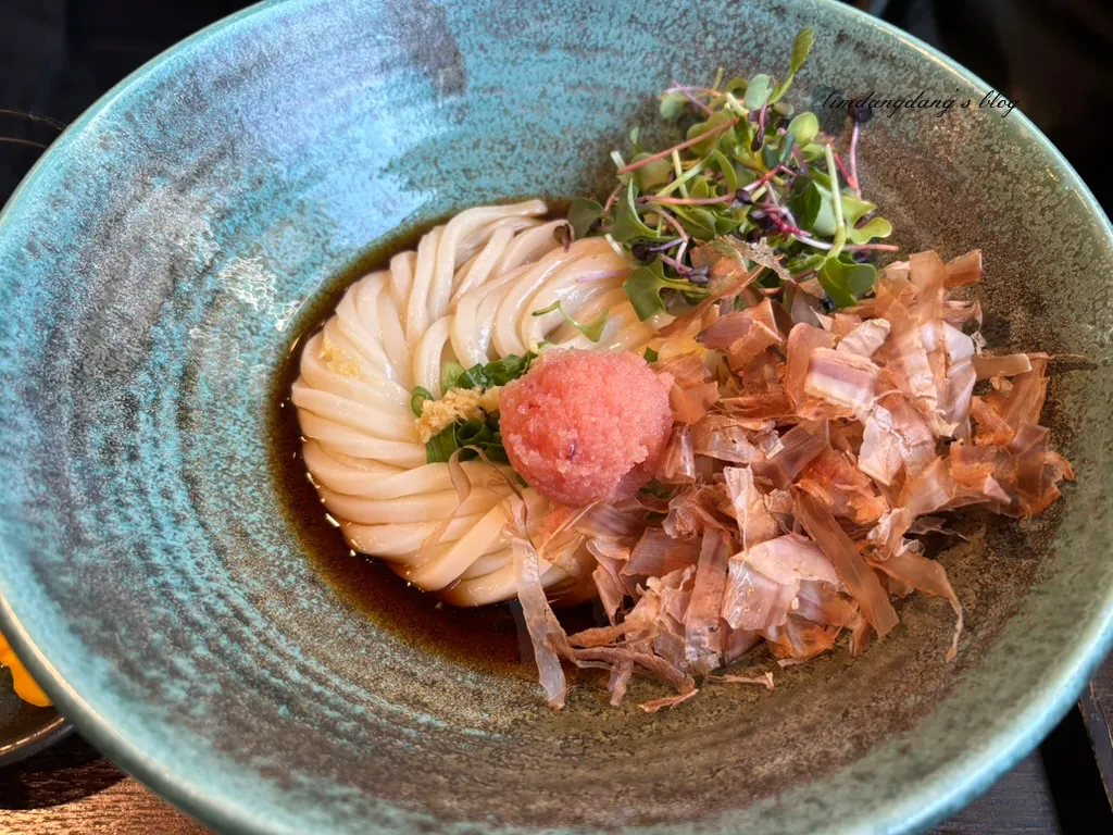 이 집은 따뜻한 우동부터 냉우동인 붓가께, 자루우동, 명란 크림 우동 등 우동의 종류가 다양하게 있었습니다. 수타우동만 집중적으로 한다는 느낌을 받았어요.