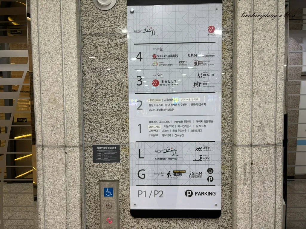 스포츠클럽필립 정자본점은 규모가 꽤 큰데요. 수영장 운영과 대중사우나 등 다양한 스포츠 센터를 운영해서 그런지 건물의 지하 2개층과 3,4층 모두를 사용하고 있어요.