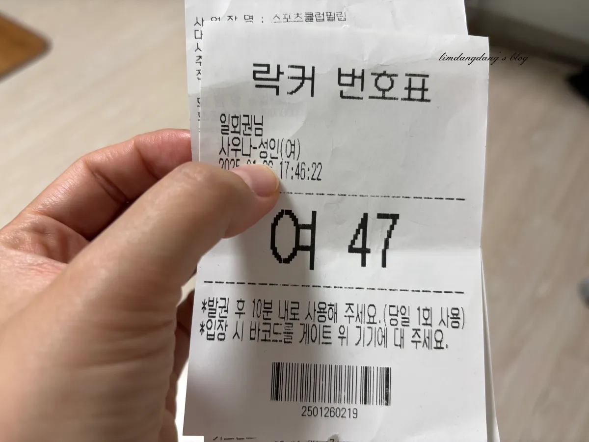 입장권이 이렇게 나오고요. 번호가 함께 나옵니다. 신발장과 옷장 모두 사용하는 번호에요.