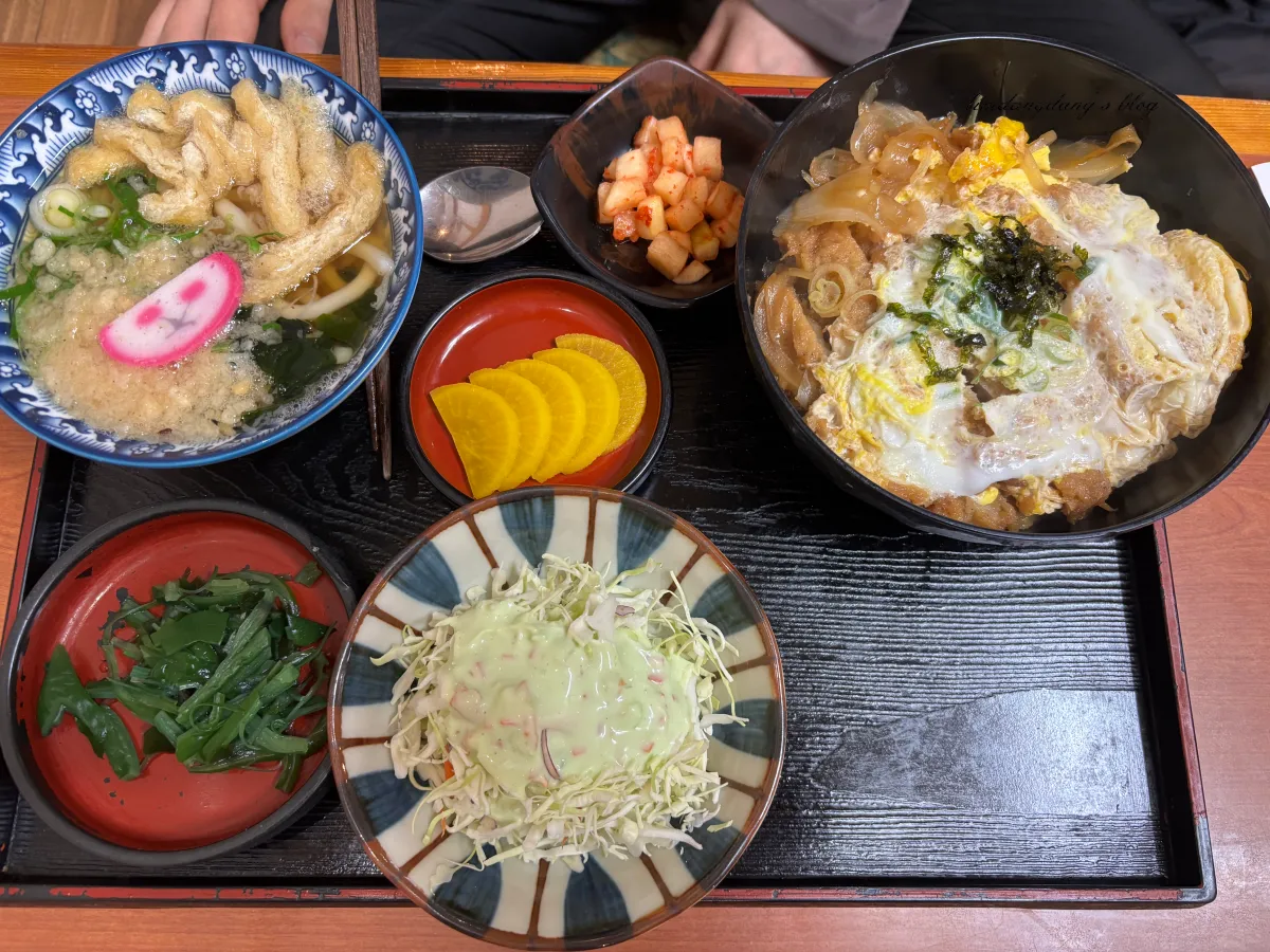 저와 남편은 각각 오야꼬돈부리 정식과 돈까스돈부리 정식을 시켰습니다. 오야꼬는 닭고기라고하네요.
