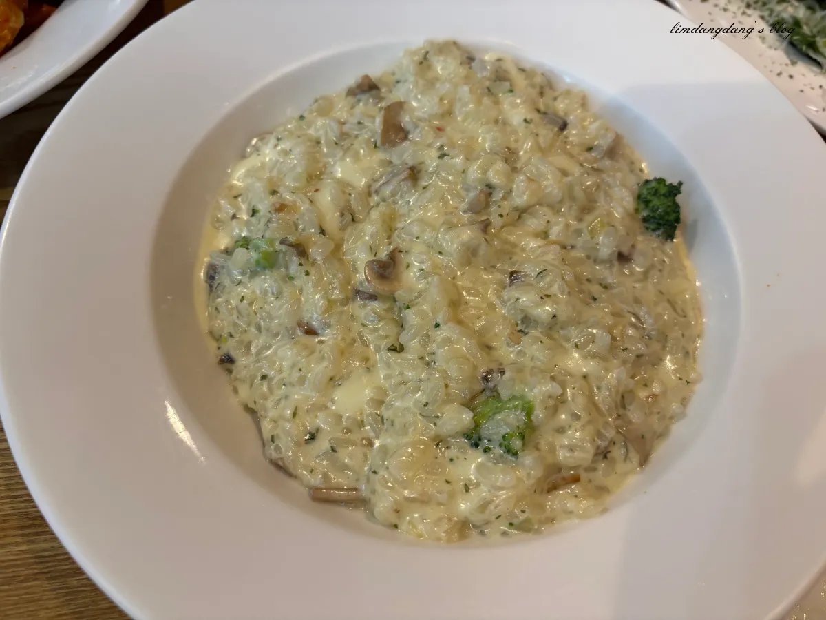 두 번째 메인은 버섯 크림 리조또를 주문하였는데요. 역시 적지 않은 양이 였고, 특히 느끼하지 않은 담백한 맛이였어요. 향긋한 각종 버섯이 크림과 함께 너무 맛있었습니다.