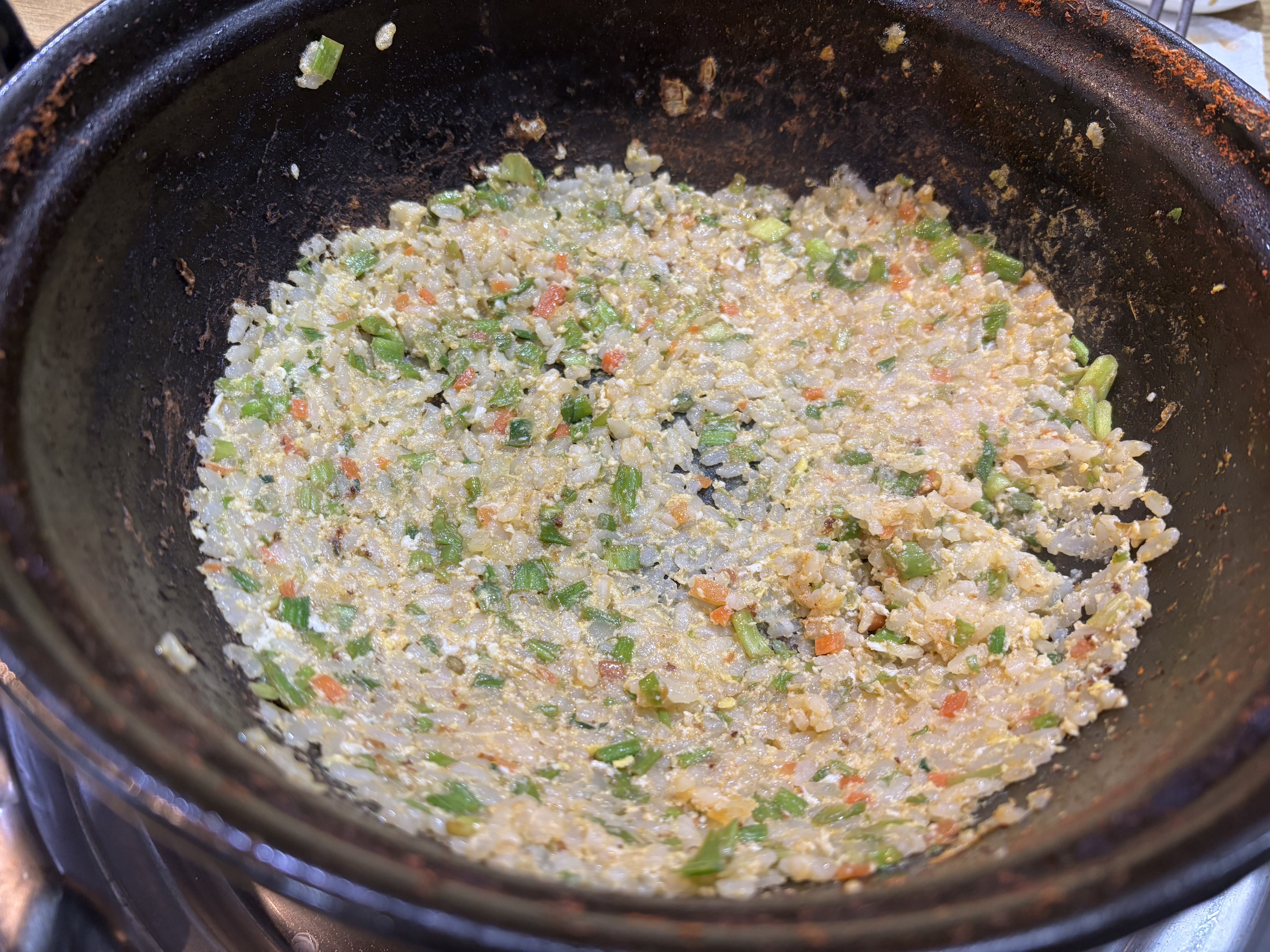빨간 국물을 넣었는데, 어떻게 하얀 볶음밥이 나왔는지 정말 궁금!