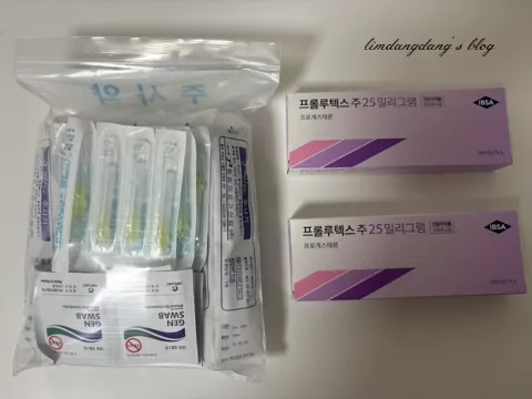 이식일 5일전부터 먹어야하는 약과 주사 그리고 질정을 처방 받았다. 호르몬 주사(프롤루텍스)는 하루에 두 번 자가주사로 배에 넣는다. 채취할때 주사들은 괜찮았는데, 프롤루텍스 주사는 은근히 아프다.