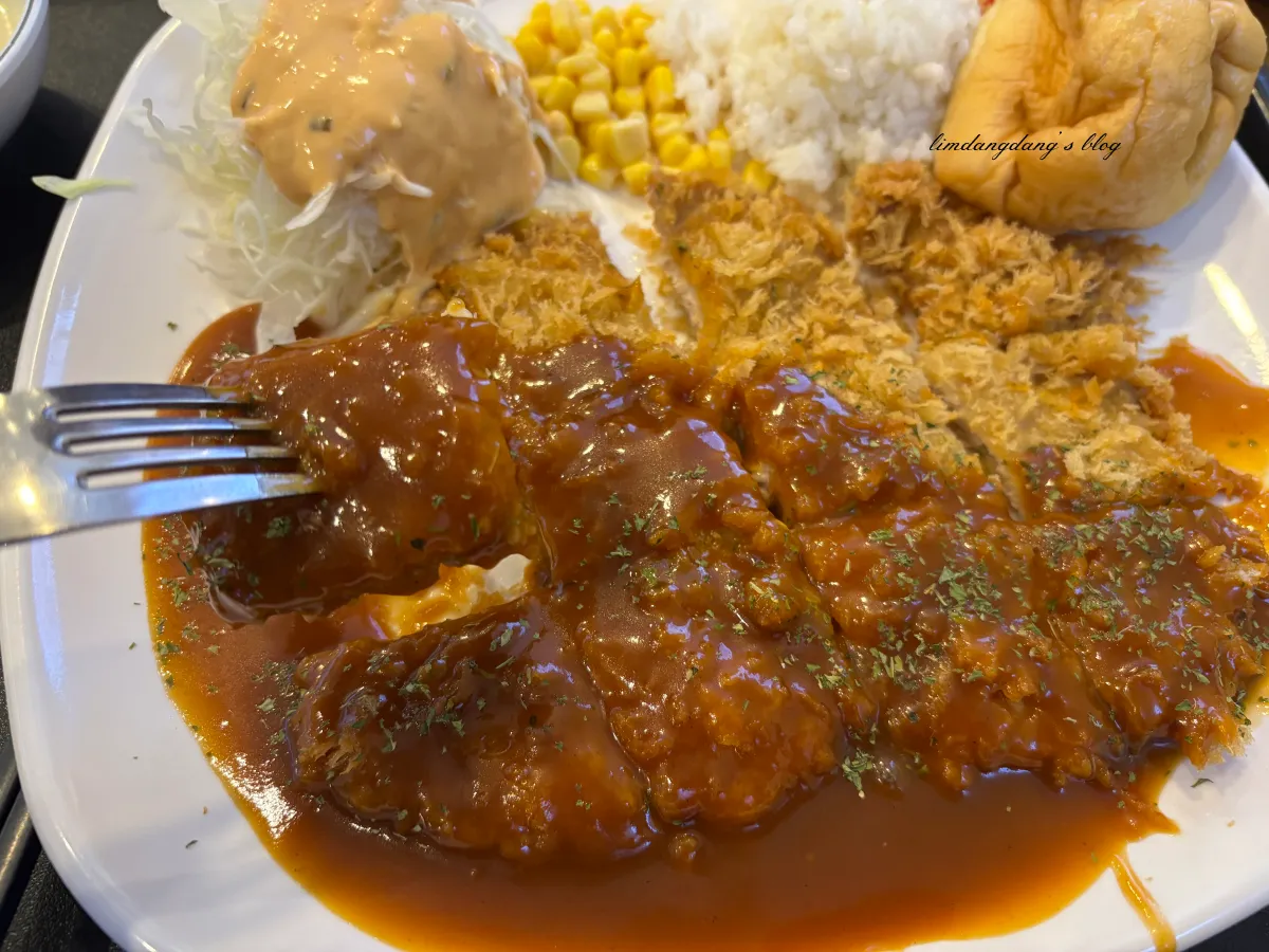 돈까스가 두껍지도 너무 얇지도 않게 적당한 두께로 바싹하게 튀겨서 맛있고, 돈까스 소스가 너무 맛있어서 돈까스와의 조합이 너무 좋습니다.