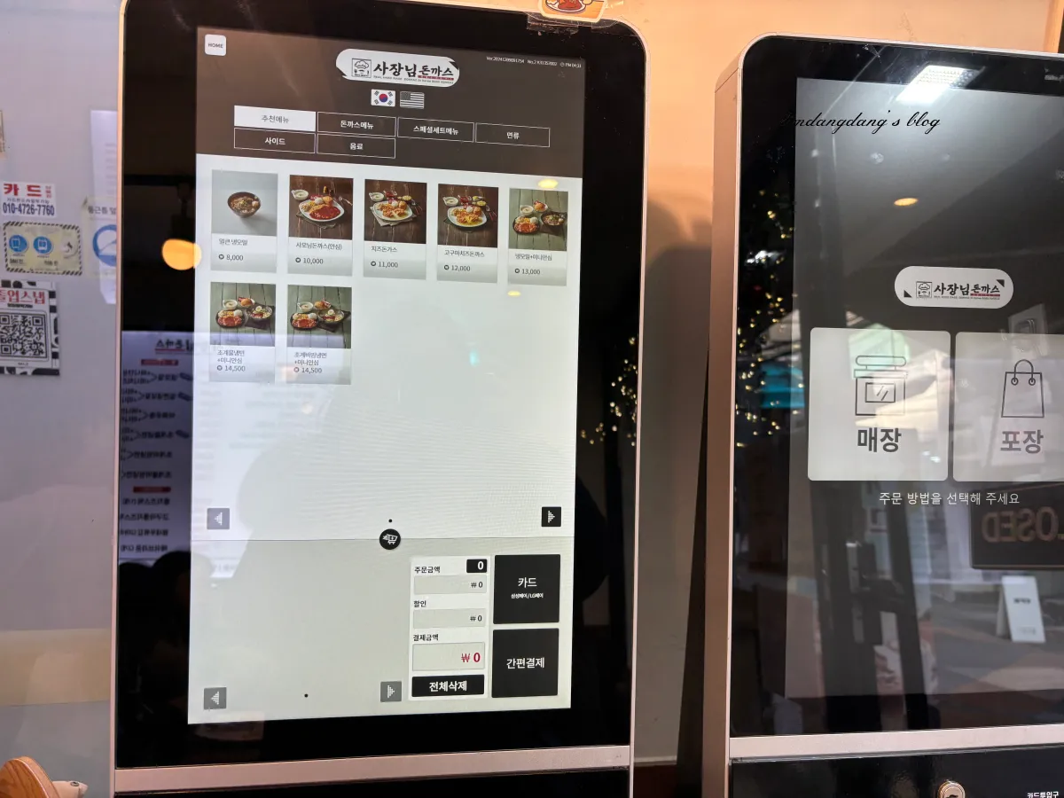 문 바로 앞에 키오스크가 있기 때문에 입장과 동시에 자리있는지 확인 후에 바로 주문한 후 자리에 앉으면 됩니다. 제가 갈때는 바로 들어가서 먹을 수 있었는데요. 입구 앞에 대기석이 있는 것으로 봐서 평소 웨이팅이 좀 있는 곳인거 같더라고요.