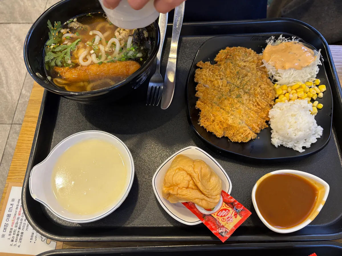 남편은 소스를 따로 요청하였더니 이렇게 따로 제공해주네요. 우동면도 쫄깃하니 맛있고 국물도 맛있더라고요. 돈까스와의 조합이 좋았습니다.