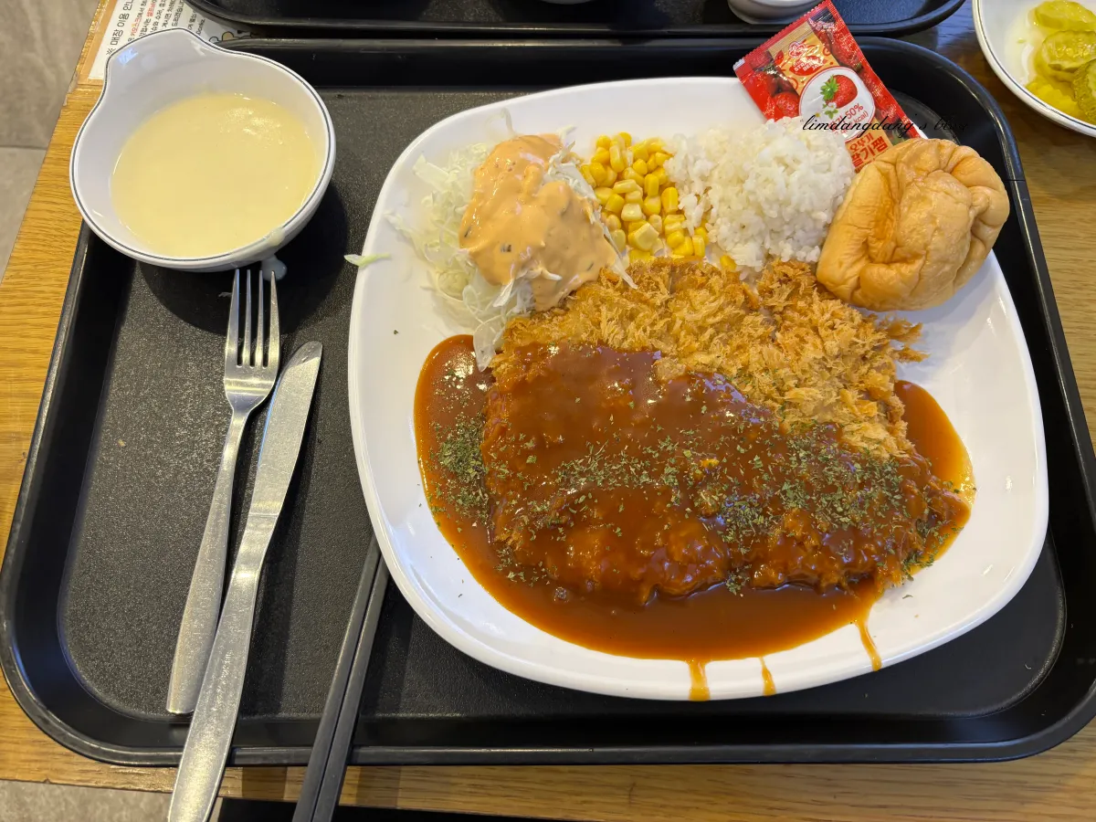 돈까스가 두껍지도 너무 얇지도 않게 적당한 두께로 바싹하게 튀겨서 맛있고, 돈까스 소스가 너무 맛있어서 돈까스와의 조합이 너무 좋습니다.