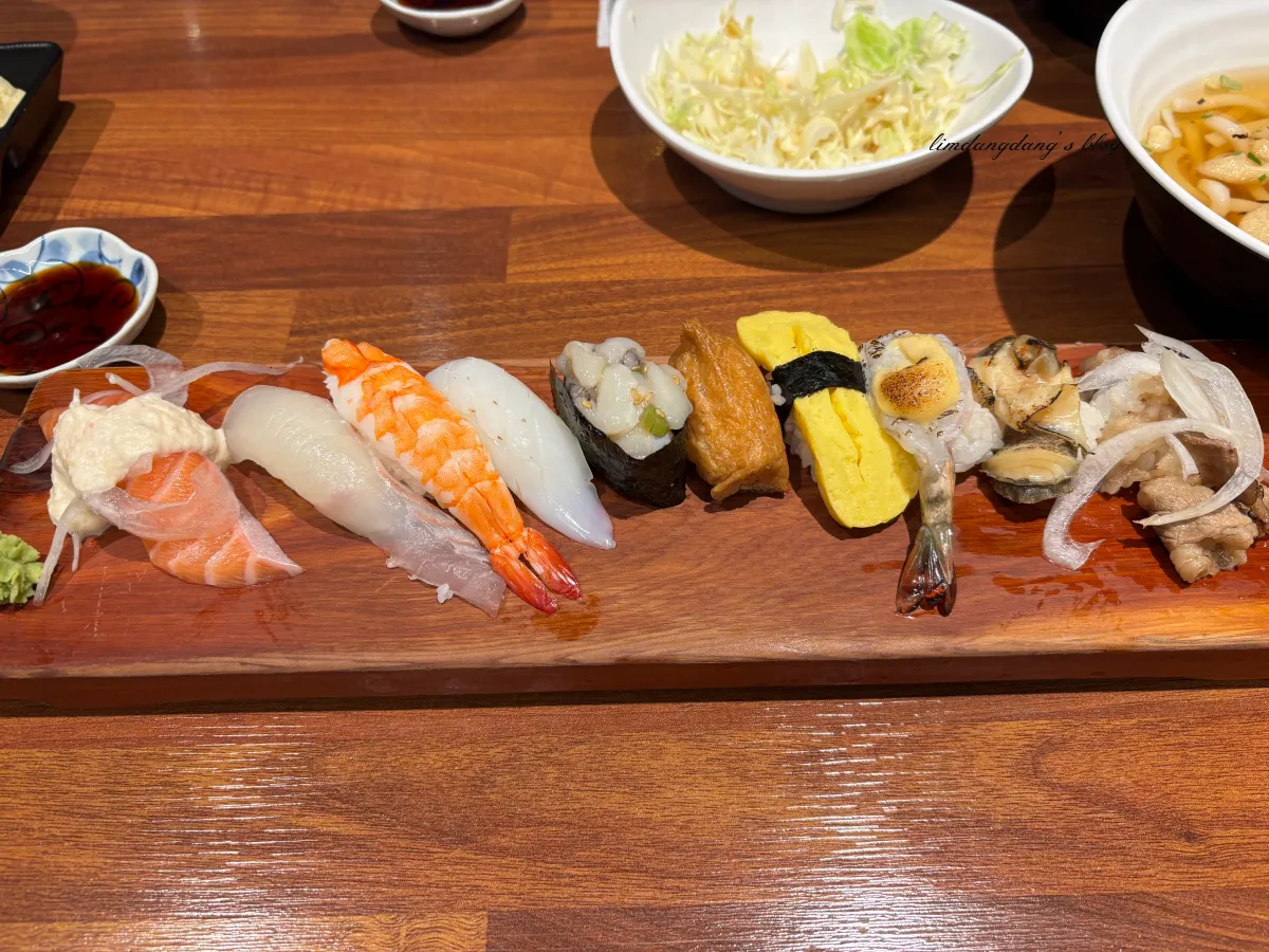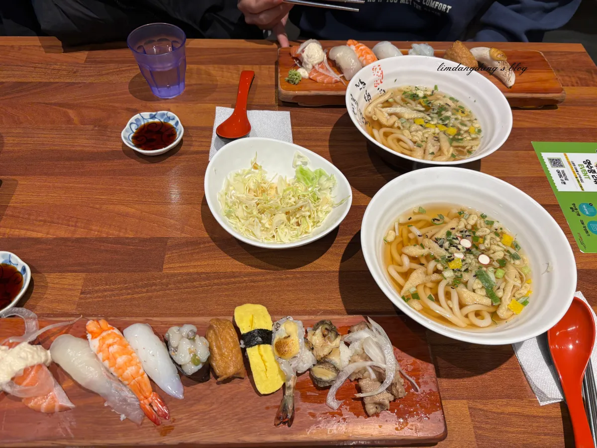 우동도 나쁘지 않기 때문에 초밥이랑 우동이랑 함께 먹으면 좋을거 같아요! 우동 추가하지 않는 사람은 따로 국물도 주는걸로 알고 있어요.