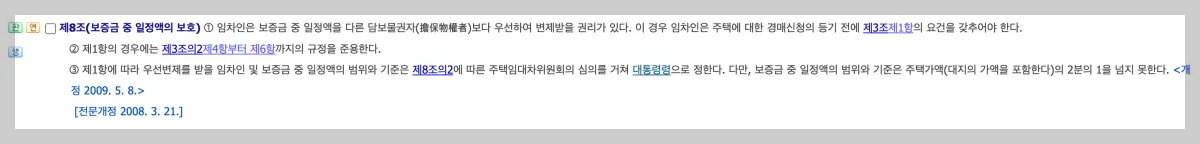 주택 임대차 보호법 제 8조(보증금 중 일정액의 보호)에서는 우선변제을 받을 임차인은 보증금 중 일정액의 범위와 기준에 따라서 보호 받게 되는데요. 우리는 그걸 편의상 소액임차인 최우선 변제금이라고 합니다.